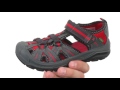 Hey guys, what’s up its bj here with the kids, this shoe is made with a combination, suede mesh and webbing upper that comes with a padded tongue and collar for support. You get a toggle closure here, that’s great for quick and easy on-and-off wear and you get soft lining on the inside, along with a cushioned footbed at the bottom. There is a capsule construction that comes with a durable rubber, outsole, it’s nice and sturdy to help keep their feet grounded. Now they can explore and have fun all at the same time,.