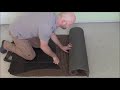 This is the Everly Stock Magic Carpet, non-padded version. Stand by, please. Okay, folks. I have the mat rolled up here. What it looks like pretty compact package put. It on a backpack strap it to a range bag or just carry. It out by the strap here. And for men then it's about 21 inches. And the circumference is about 14 inches so. Once again this is the Eberly stock magic carpet non-padded version.