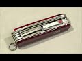 A can opener with a three millimeter screwdriver, a bottle opener with a six millimeter screw driver wire, stripper a reamer punch and sewing awl corkscrew scissors wood saw multi-purpose hook, toothpick tweezers and a keyring Victoria Knox states that and I quote, guarantees all knives and tools to be a first-class stainless deal and also guarantees a lifetime against any defects and material and workmanship.